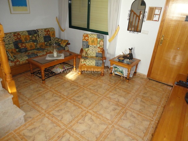 Таунхаус в Ла Сения. Площадь дома 80 м2. Он состоит из прихожей, гостиной, столовой с кухней, трех спален, двух ванных комнат, балкона и террасы. Из бунгало открывается вид на море. Мебель включена в стоимость таунхауса. Имеется парковка. На общей территории есть бассейн. Дом находится в хорошей зоне, в 650 метрах от моря и недалеко от теннисных кортов.