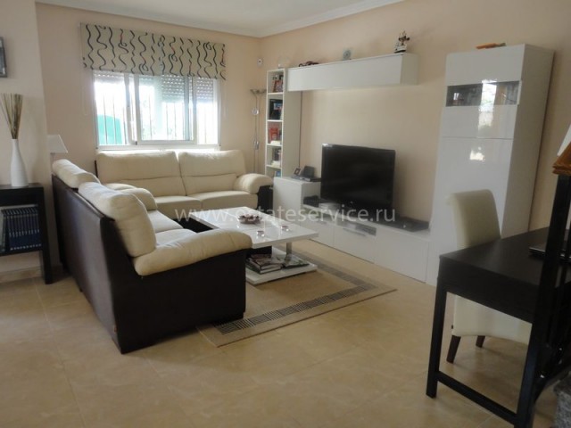 Бунгало в Кабо Роиг. Площадь дома 130 м2. Он состоит из гостиной, кухни, трех спален, двух ванных комнат и террас. Мебель входит в стоимость виллы. Установлена система сигнализации. Таунхаус находится в урбанизации, расположенной неподалеку от необходимой инфраструктуры, в километре от пляжа и рядом с полем для гольфа. Дому принадлежит участок, площадью 150 м2. Имеется парковка. На общей территории урбанизации есть бассейн.