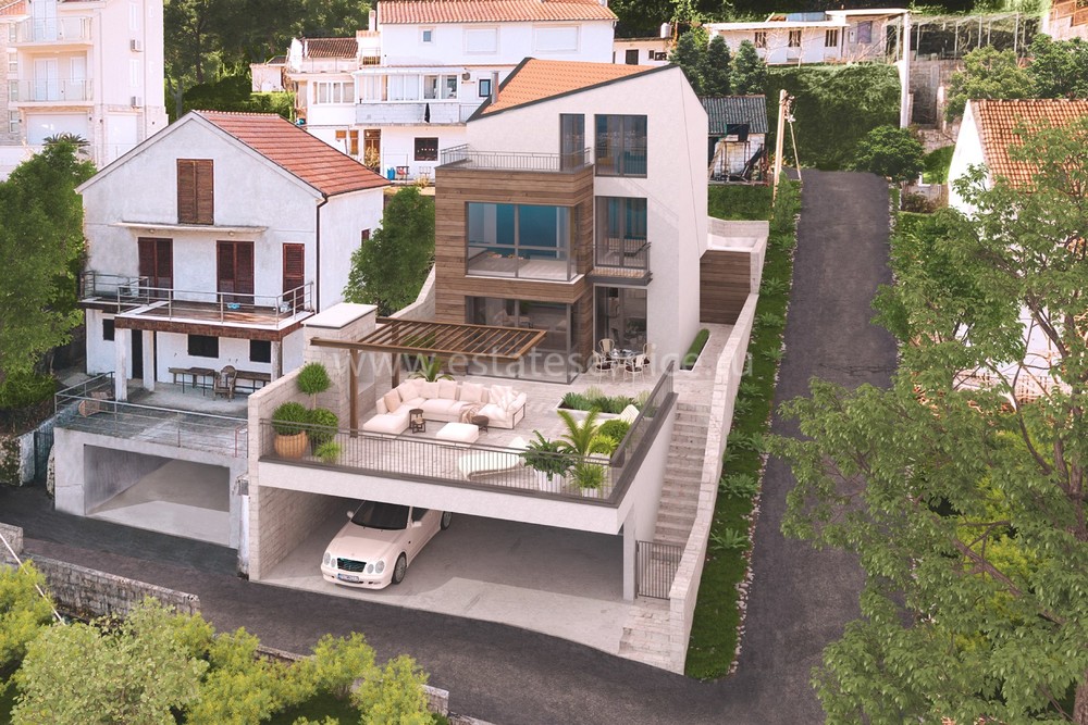 Строящаяся вилла рядом с морем в живописном местечке Прчань. Площадь дома 250 m², на трёх уровнях разместились светлая гостиная с камином и панорамным видом на море, три спальни, две ванные комнаты, гостевой туалет и террасы. Участок будет выложен натуральным камнем, разбит сад, парковка на две машины (можно оборудовать гараж) и зона барбекю. Теплоизоляционный фасад декорирован деревом, стеклопакеты с клапанами приточной вентиляции и термальной защитой, подогрев полов в ванных, кондиционеры, сантехника (Grohe), светодиодное освещение, сигнализация, спутниковые интернет и телевидение. Завершение строительства и ввод в эксплуатацию намечены на июнь 2019 г.