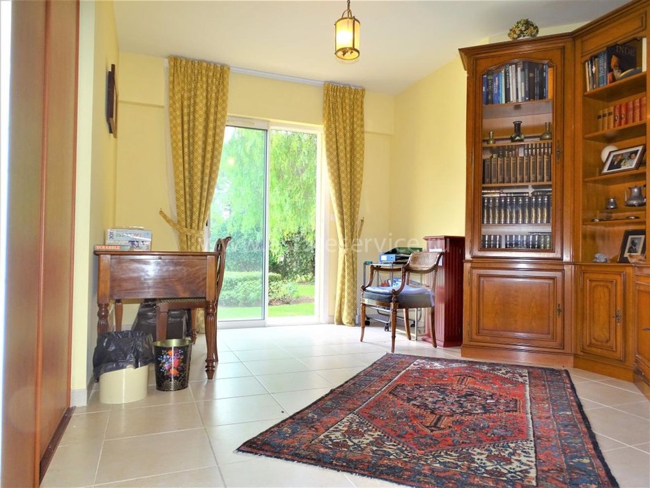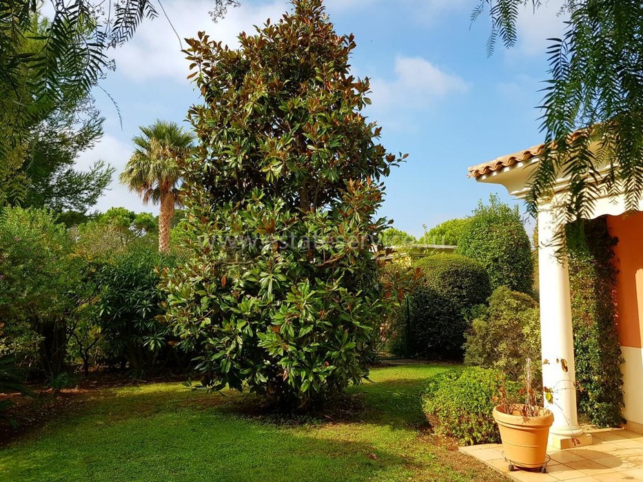 Вилла в флорентийском стиле в небольшом закрытом домене в центре Кап дАнтиб. Площадь дома 185 m² (жилая 145m²), ровный участок 1.500 m² с красивым садом (магнолии, оливковки, мимозы), большим паркингом и бассейном. На одном уровне разместились прихожая с гардеробной, светлая гостиная 48 m² с камином, отдельная кухня, главная спальня с гардеробной, ванной комнатой (душ и ванна), гостевой туалет, ещё две спальни с большими шкафами и ванной комнатой, отдельный туалет с умывальником, винный погреб 15 m², террасы и двойной гараж. Здание 2001 года постройки, поддерживается в хорошем состоянии. Ежемесячные платежи 180 €, годовой налог 3.611 €.