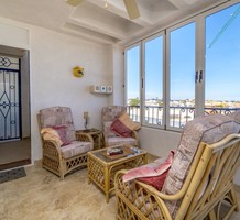 Двухуровневые апартаменты на верхнем этаже комплекса с бассейном в спокойном жилом районе La Ciñuelica. Площадь квартиры 103 м2 - прихожая, полу-открытая кухня, большая гостиная-столовая с застекленной террасой 12 м2, а также терраса-солярий на крыше площадью 27 м2 с комнатой, которую можно использовать в качестве дополнительной спальни. Красивая урбанизация с ухоженной территорией, два общественных бассейна, близость всех удобств.