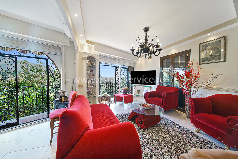 Прекрасная вилла 250 м2 с очень качественной отделкой в трех километрах от моря, сектор Hameau. Из окон и с многочисленных террас открывается прекрасный панорамный вид на море и зеленый лес. Ориентирована вилла на южную сторону, благодаря чему в ней всегда солнечно и светло. Дом имеет красивую входную группу, просторную гостиную с открытой оборудованной кухней, две спальни, гардеробную, кабинет, две ванные комнаты, гостевой туалет, веранду и летнюю кухню. На втором этаже квартира с отдельным входом по красивой мраморной лестнице, в которой есть гостиная с открытой кухней, три спальни, ванная комната, гостевой туалет. На участке площадью 1220 м2 имеется прекрасный светлый сад с фруктовыми деревьями (лимон, яблоко, слива, инжир, апельсин, вишня), зона барбекю. У виллы три гаража на одном уровне 60 м2 и несколько парковочных мест, оборудована автоматическими воротами, видеонаблюдением, есть охрана, водоснабжение в гараже. Налог на недвижимость 1.800 €.