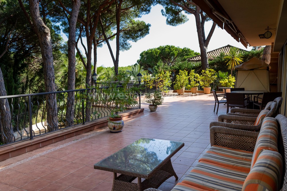 Семейное шале с шикарной отделкой в престижной урбанизации Cala Sant Francesc - одна из самых красивых бухт на побережье в 15 минутах ходьбы от Бланеса. Общая площадь 480 м2, практически ровный и очень продуманный участок 2.300 м2 с счастным сосновым бором с газоном, бассейном, детской площадкой и пышным садом с автоматическим поливом из колодца. В основной вилле разместились большая гостиная-столовая, две кухни, пять спален с большими окнами, выходящие в сад, тренажерный зал, сауна, множество террас, подсобных помещений и отдельный гостевой дом с двумя спальнями и ванной комнатой. Дом полностью меблирован и укомплектован бытовой техникой, установлены кондиционеры, оборудованы полы с подогревом, спутниковое ТВ и прочие удобства.