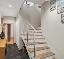 Просторный таунхаус с хорошим ремонтом в двух минутах ходьбы от центральной площади поселка. Общая площадь 193 m² (жилая 140 m²) - огромная гостиная с камином, высоким балочным потолком более четырёх метров, и выходом на крытую террасу - вид на Сен-Жан с небольшим проблеском моря, полу-открытая кухня, мезонин 20 m², который можно использовать под кабинет или дополнительное спальное место, три спальни с ванными комнатами, два отдельных туалета, крытый гараж 20 m² с прямым доступом в квартиру. Качественный ремонт по современным стандартам, реверсивный кондиционер, подогрев полов, парковка. Коммунальные платежи 66 €, годовой налог 1.000 €.