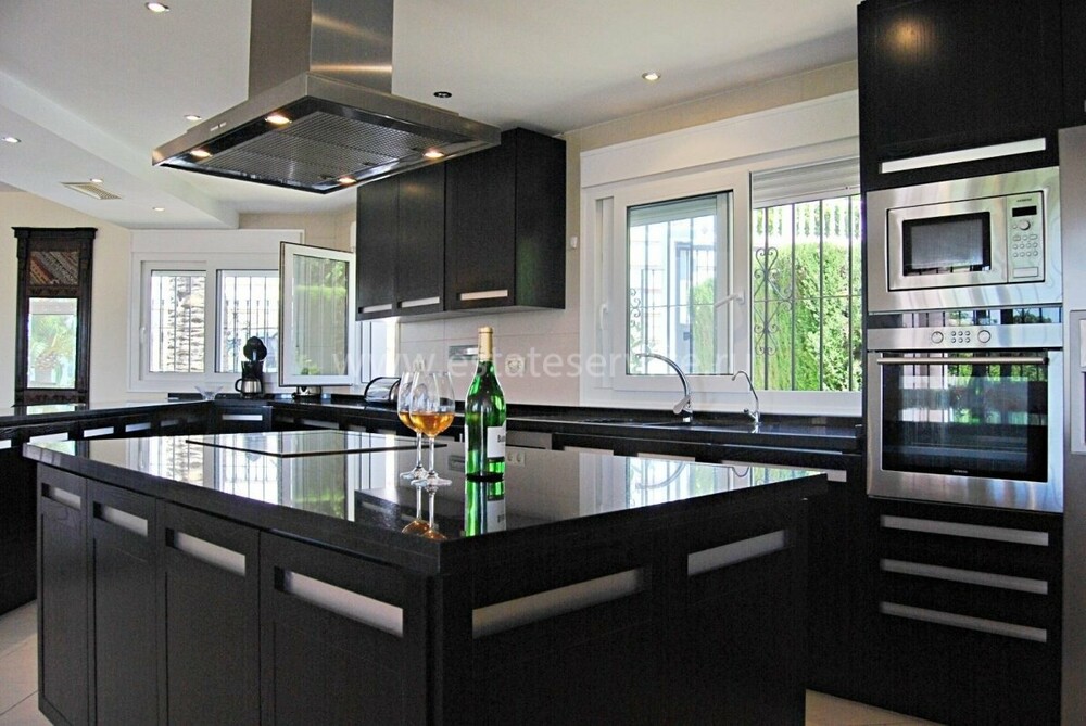 Солидная вилла с приятной открытой панорамой в урбанизации Ла Сьерресуэла - спокойная жилая зона в нескольких минутах езды от центра Фуэнхиролы. Площадь дома 488 m² - гостиная с камином, открытой кухонной зоной и выходом на большую террасу, пять спален с ванными комнатами, несколько подсобных помещений и подвал. Очень хорошее состояние, дом был полностью и со вкусом отремонтирован, светлые большие комнаты, просторный бассейн.