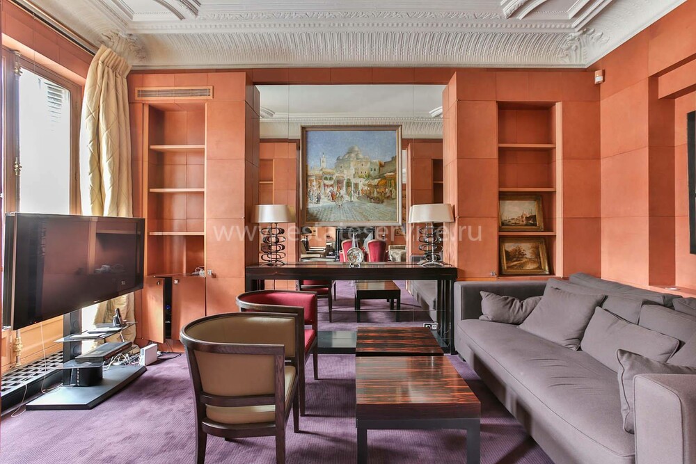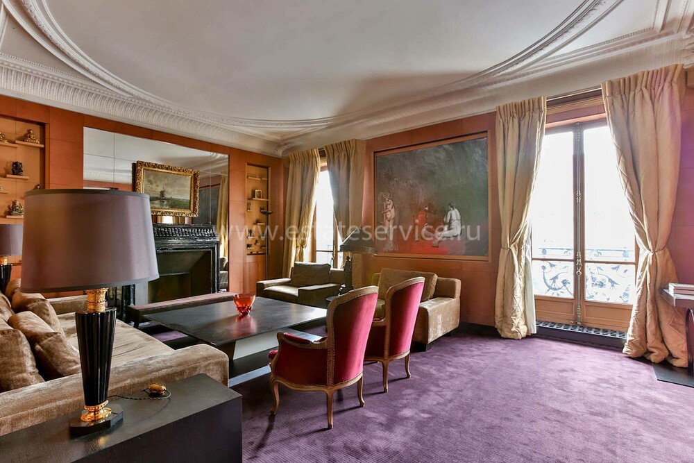 Апартаменты с шикарным видом на Эйфелеву башню в одной из самых красивых резиденций по проспекту George V. Жилая площадь 190 m² - прихожая, гостиная, столовая, современная кухня, две просторные спальни с гардеробным и две ванные комнаты, одна из которых с хаммамом. В цену включены паркинг во дворе здания, подсобная комната и кладовая в подвале.