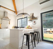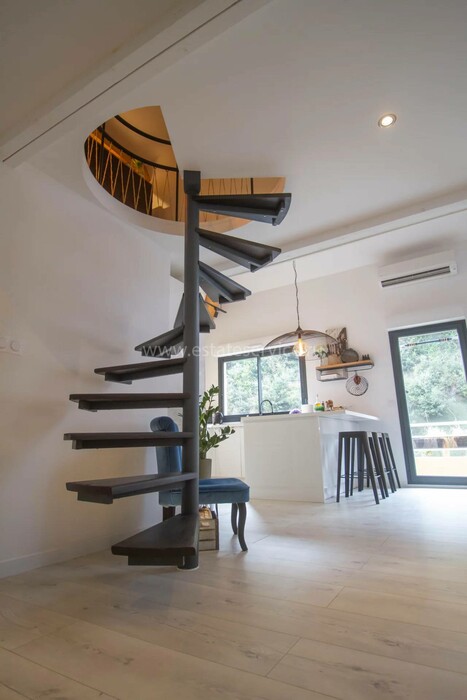 Двухуровневая квартира на верхнем этаже небольшого современного кондоминиума в 15-ти минутах ходьбы от набережной и трамвайной линии. Общая площадь 80 m² (жилая 70.2 m²), на основном уровне светлая и просторная гостиная 31.7 m² с высоким (5 метров) потолком, открытой кухней и выходом на западную террасу 7.92 m², спальня 15.3 m² с встроенной гардеробной, душевая комната с туалетом. Наверху разместилась вторая спальня 13.2 m², которую можно использовать также под кабинет. Качественная отделка и материалы, домашнаяя автоматизация - рольставни, освещение, кондиционер, включён двойной крытый паркинг, можно докупить кладовую. Коммунальные платежи 163 €, годовой налог 1.000 €.