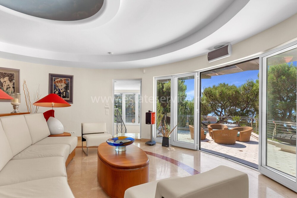 Современная вилла с живописным привилегированным расположением на Кап-Ферра. Жилая площадь 440 m², в доме - просторная гостиная с зоной столовой и оборудованной кухней, лаунж-зона с выходом на террасу, главная спальню со своей ванной комнатой и гардеробной, ещё три спальни с ванными комнатами, несколько панорамных террас, игровая, сауна и гараж.