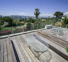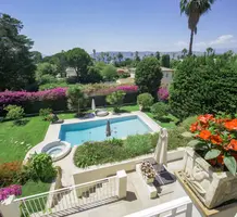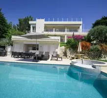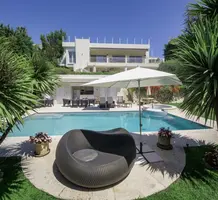 Ухоженная вилла с красивой морской панорамой поблизости от пляжей. Общая площадь 240 m², уютный огороженый участок 1.158 m² с пышным садом и бассейном. На первом уровне просторная гостиная и столовая выходят на большую террасу, отдельная кухня, спальня с душевой и гостевой туалет. Наверху разместились ещё четыре спальни, приятная затененная терраса, прачечная, а также терраса-солярий 120 m² с ещё более захватывающим видом на море. Отличное состояние, домик у бассейна с летней кухней, джакузи, гараж на две машины и открытая парковка.