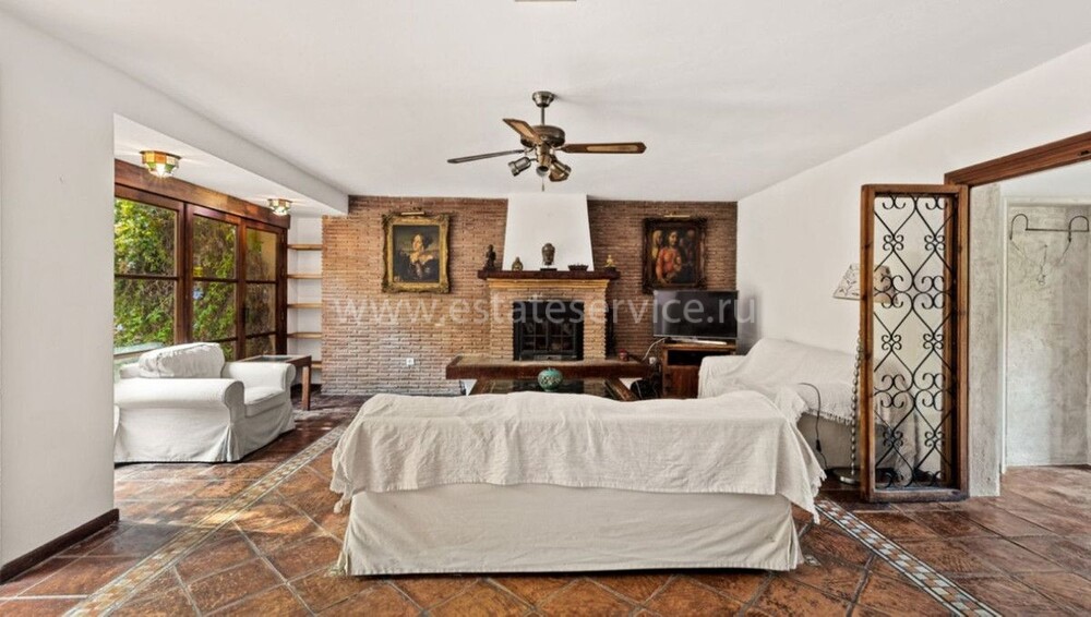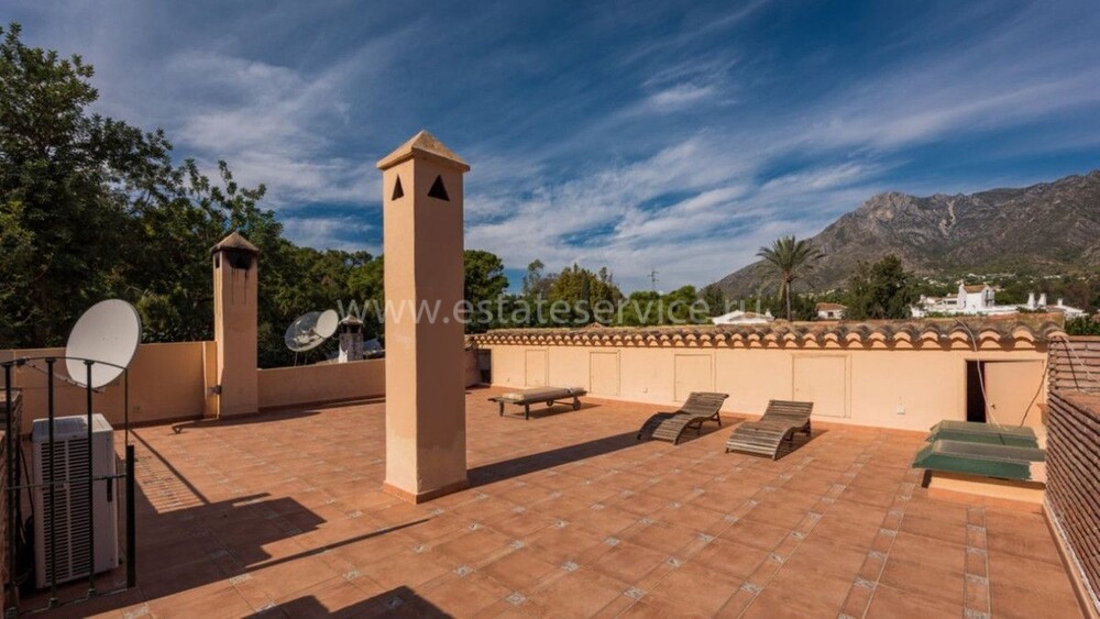 Атмосферный дом в спокойной жилой урбанизации в андалузском стиле из 60-ти вилл с собственной часовней и магазинами. Площадь дома 279 м2, на двух уровнях разместились прихожая с большим залом, гостиная с камином, зоной столовой и доступом к уютной задней террасе, обеденная, отдельная кухня, главная спальня наверху с камином, французскими балконами, ванной комнатой и гардеробной, ещё три спальни с ванной комнатой и балкончиками, а также терраса-солярий на крыше с открытым видом на горы, море (небольшой проблекс) и окрестности. Близость всей инфраструктуры, большой потенциал, редкое предложение.