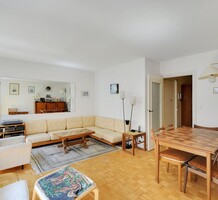 Семейная квартира на четвёртом (4/9) этаже с лифтом и консьержем, здание 1960-х годов постройки. Жилая площадь 82 m² - прихожая 10.4 m² со шкафом и гардеробной, двойная гостиная-столовая 23 m² (в изначальной планировке это были две спальни по 9.5 m², которые были объединены), отдельная кухня 6.3 m², две спальни 14.7 и 19 m², ванная комната, отдельный туалет, гардеробная и два балкона 1.8 и 2.3 m². Приличное состояние, газовое отопление, легко оборудовать третью спальню. Владельцам предоставляется кладовая 2.7 m², можно купить большой паркинг на две машины - 40.000 €. Коммунальные платежи 282 €, годовой налог 1.260 €.
