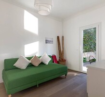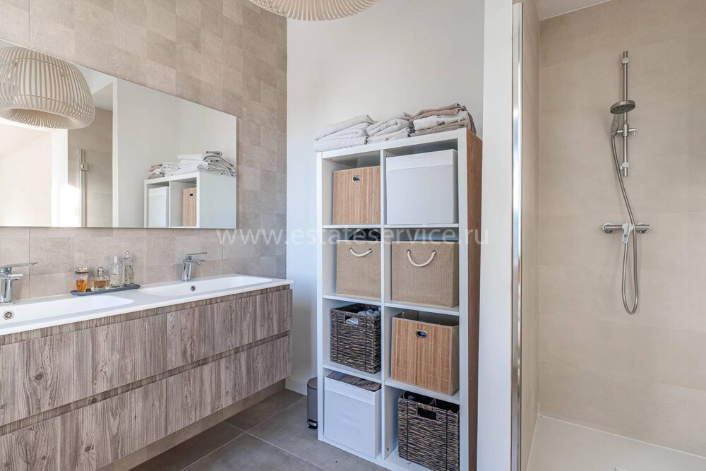 Уютное семейное владение из двух домов в 15-20 минутах ходьбы от моря. Жилая площадь 180 m², шикарный ровный участок 800 m² с ландшафтным садом и бассейном. На первом этаже главной виллы - спальня с выходом в сад, гостиная-столовая с открытой кухней и гостевой туалет, наверху - ещё две спальни, одна из которых с гардеробной и террасой. Отдельный гостевой коттедж площадью 50 m² - гостиная с кухней и две спальни, одна из которых в мезонине со своей ванной комнатой. Отменное (ремонт 2020 г) состояние, есть гараж, навес для машины и открытая парковка.