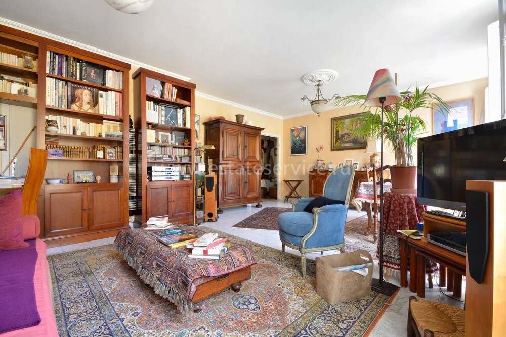 Большая квартира на 4-м этаже отреставрированного здания 18 века в самом центре Ниццы - Place Garibaldi. Общая площадь 123 m² (жилая 115 m²) - прихожая 14 m², гостиная-столовая 31.6 m² с балконом 3.7 m², куда также выходит отдельная кухня 9.7 m², две большие спальни 22 и 23.4 m², просторная ванная с окном и отдельный туалет. Светлые и просторные комнаты, очень высокие потолки, камин, возможность парковки. Здание без лифта. Коммунальные платежи 134 €, годовой налог 1.659 €.