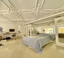 Нетипичная двухуровневая квартира на первом этаже красивого дворца с парком в нескольких минутах ходьбы от центра и пляжа. Общая площадь 84 m² (жилая 78 m²) - светлая тройная гостиная 46 m² с высоким потолком, просторная спальная зона 21.8 m² в примыкающем по лестнице мезонине, отдельная кухня 5.38 m² с новым ремонтом, ванная комната с душевой и отдельный санузел. Отменное состояние, высокие потолки с лепниной, на территории разбит ухоженный сад, общий паркинг, отдельный вход. Коммунальные платежи 148 €.