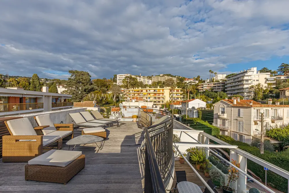 Смежная вилла с тихим расположением в пяти минутах ходьбы до улицы Антиб, набережной Круазет и пляжей. Жилая площадь 170 m², на первом этаже большая гостиная с обеденной зоной, кухня, гостевой туалет и очаровательный частный закрытый садик. Далее разместились три спальни, одна с балконом, две душевые и туалет. Наверху - главная спальня с душевой, туалетом и выходом на большую террасу 35 m² с душем и летней кухней, а также лестница, ведущая на террасу-лаунж зону на крыше. Годовой налог 2.707 €.