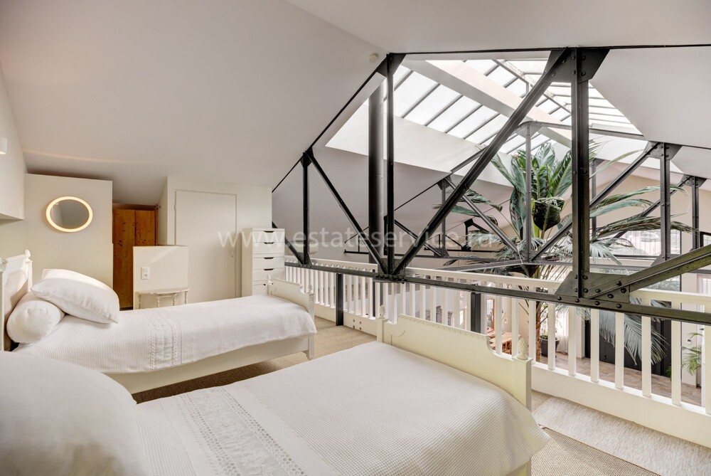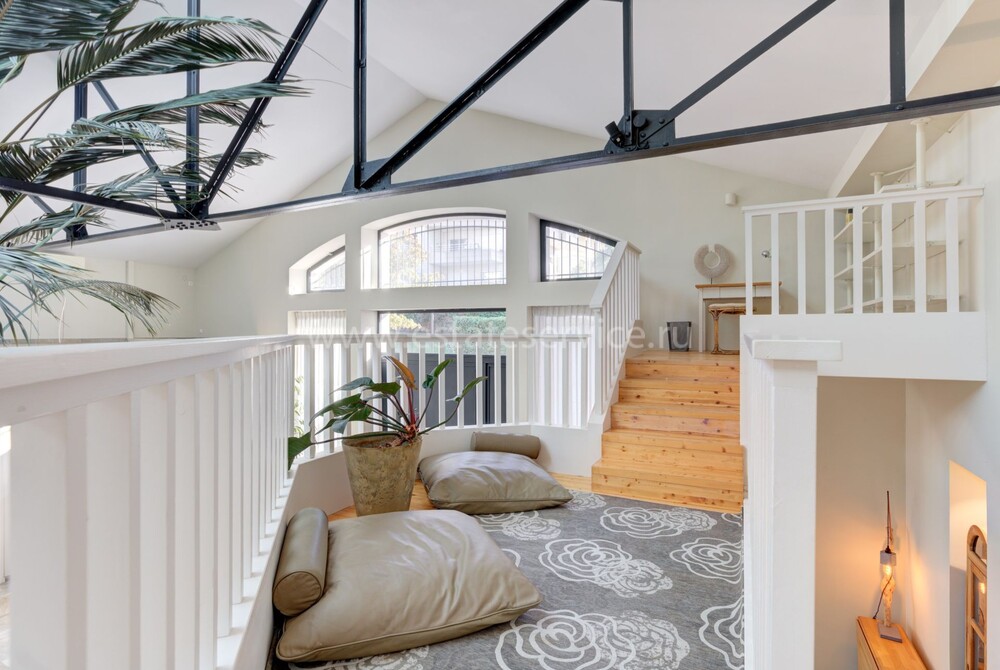 Нетипичная полностью отреставрированная вилла (бывшая фабрика) в 700 метрах от моря, набережной Круазет и Дворца фестивалей. Общая площадь 321 m² (жилая 221 m²), прилегающий участок 320 m² с небольшим ухоженным садом. В доме - огромная приёмная 120 m² с красивой стеклянной крышей и 8-метровой высотой потолка: включает гостиную с зоной столовой, открытой кухней и выходом на террасу 100 m², защищенную от посторонних глаз, три спальни с ванными/душевыми и туалетами, и дополнительная спальная зона на уровне мезонина с душевой и туалетом. Есть также прачечная, отдельная квартира и парковка.