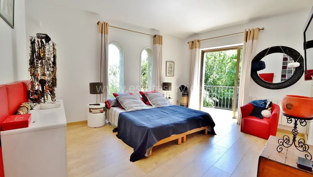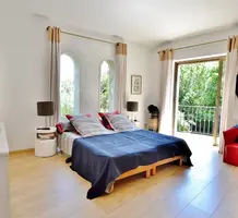 Тихая вилла с открытым видом (в том числе на море) в отружении зелени и спокойствия в Биоте, сектор Bois Fleuri. Общая площадь 240 m² (жилая 170 m²), просторный участок 3.000 m² с пышным садом, получено разрешение на возведение бассейна - есть хороший строительный потенциал, но участок не делится. В доме - большая гостиная-столовая с кухней открытого плана, главная спальня сьют, ещё две спальни, ванная комната, а также большая комната под кабинет/свободное назначение и гараж. Годовой налог 1.700 €.