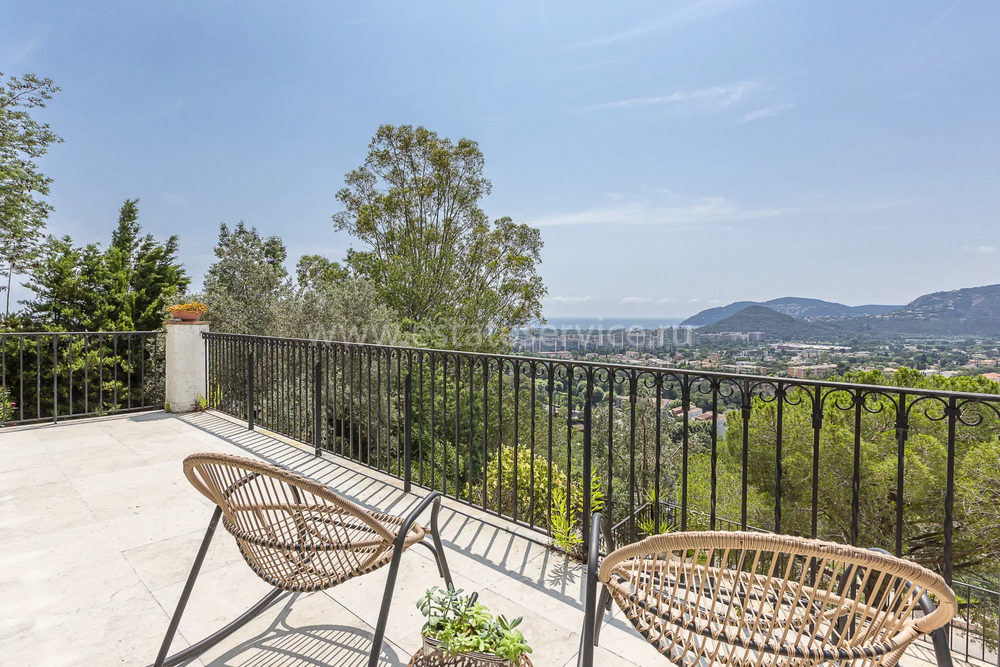 Современная вилла с красивой панорамой на холмах Мандельё-ла-Напуль, сектор Ле Терм. Жилая площадь дома 250 m² - светлая гостиная с кухней островного типа, окнами в пол и выходом на широкую террасу, вторая часть гостиной представляет собой уютную зону для просмотра телевизора или чтения, наверху разместились три спальни, главная с большой ванной/душевой комнатой, две другие -каждая со своей террасой и общей современной душевой комнатой. Есть также отдельные (подходят для сдачи/гостей/персонала) апартаменты: гостиная с кухней, спальня, подсобная комната, встроенная в скале и отдельная терраса. На участке площадью 1.470 m² домик у бассейна с захватывающими видами, новый инфинити-бассейн нетипичной формы, квартира-студия и крытый гараж. Удобное расположение рядом с Манделье, легкий доступ к автомагистрали и аэропорту, всего 10-ть минут от пляжей Канн.