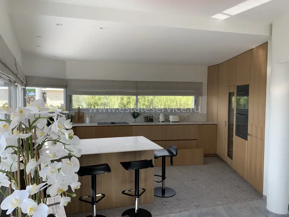 Полностью отремонтированная вилла с красивым видом и удобным расположением в 7-ми минутах езды от моря. Жилая площадь 285 m², продуманный участок 875 m² с ухоженным ландшафтным садом, бассейном и паркингом. В доме - прихожая, очень светлая и просторная гостиная с высокими окнами, зоной столовой, большой кухней и выходом на панорамную террасу, пять спален с ванными комнатами, сауна и двойной гараж. Коммунальные платежи 100 €, годовой налог 2.697 €.