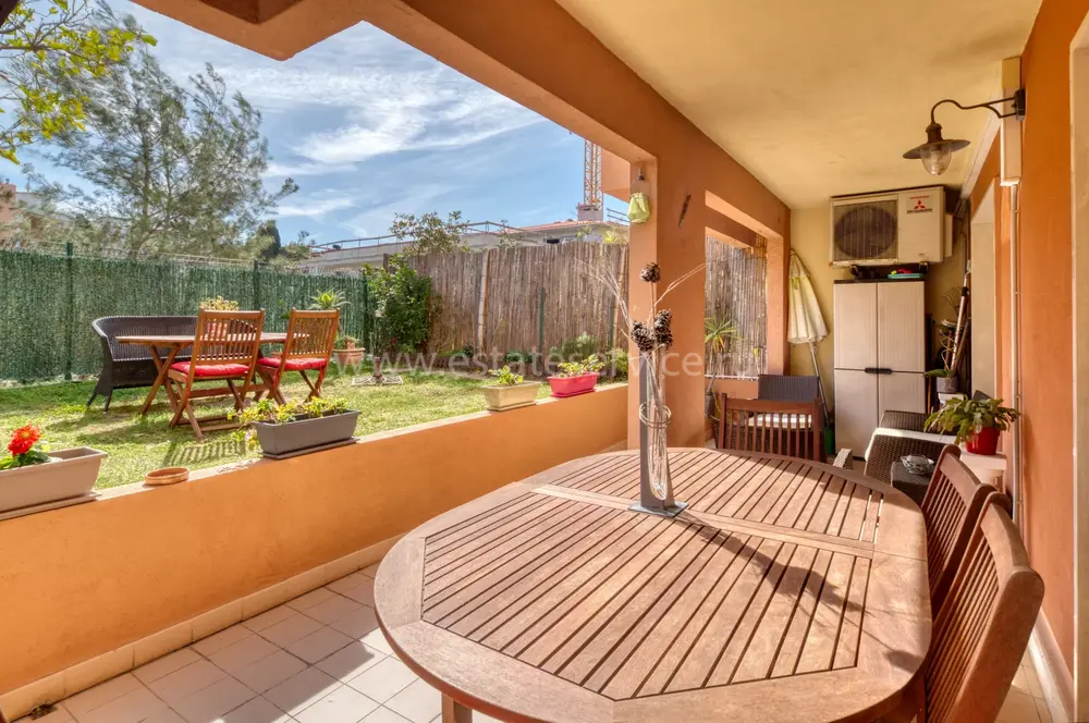 Двухуровневая квартира в небольшом кондоминиуме в пяти минутах от пляжа. Жилая площадь 86.75 m² - есть два независимых входа, на первом уровне большая гостиная 22.8 m² с открытой кухней и выходом на крытую террасу 30 m² и в очаровательный сад 52 m², первая спальня 8.7 m², ванная комната и отдельный туалет. Наверху разместились (доступ также по внутренней лестнице) прихожая 4.6 m², коридор 6.8 m², ещё две спальни 7.4 и 16.7 m² с большой угловой террасой 31 m², ванная комната, отдельный туалет и прачечная/гардеробная 5.7 m². Отличное состояние, включена кладовая, можно купить (дополнительно) гараж 17 m², у подножия резиденции есть автобусная остановка. Коммунальные платежи 360 €, годовой налог 1.550 €.