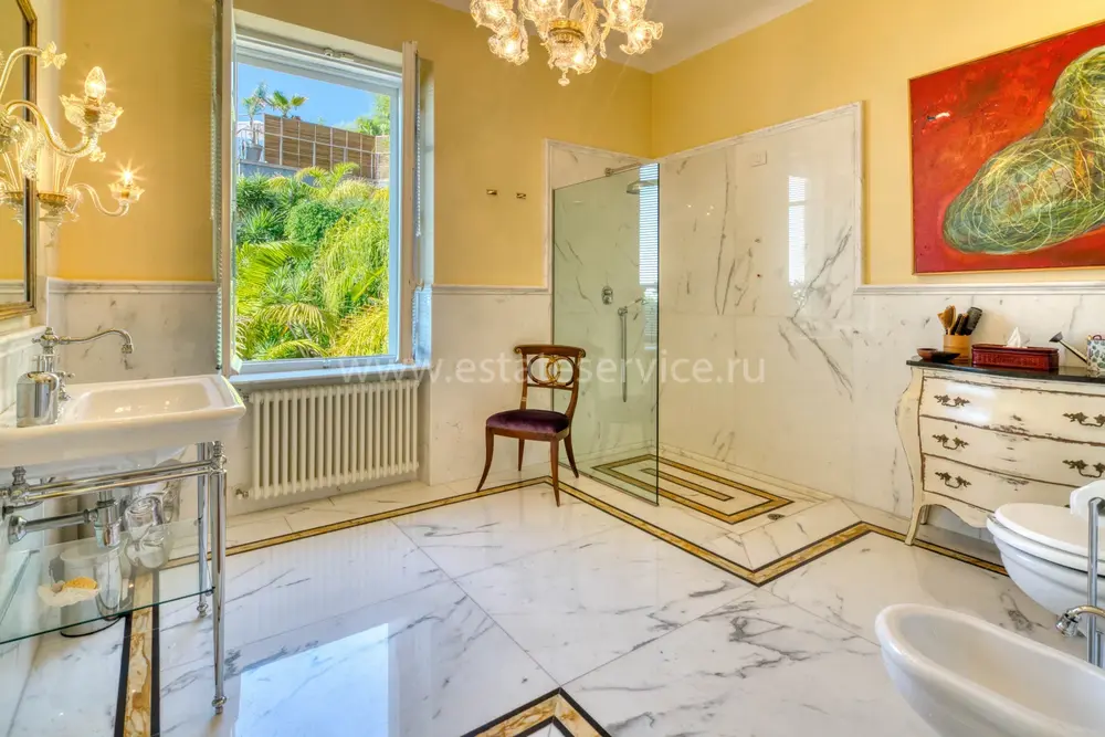 Ухоженная вилла стилистики Belle Epoque в двух минутах от Княжества Монако. Жилая площадь 240 m², приземный этаж (уровень нижней части сада) соединен с домом, но имеет также отдельный вход, в настоящее время переоборудован в тренажерный зал, включает три комнаты - гостиную с кухней, спальню, гардеробную и душевую с туалетом. На основном уровне - прихожая с офисной зоной, просторная гостиная с камином и выходом на террасу, отдельная кухня с выходом к ландшафтному саду с деревьями и декоративным прудиком, кладовая и гостевой туалет. Наверху разместились две спальни с панорамными балконами, каждая с большой душевой комнатой и туалетом. Отличное состояние, большой гараж с прямым доступом, есть место для бассейн. Всего 500 метров от магазина и 800 метров до пляжа. Годовой налог 2.922 €.