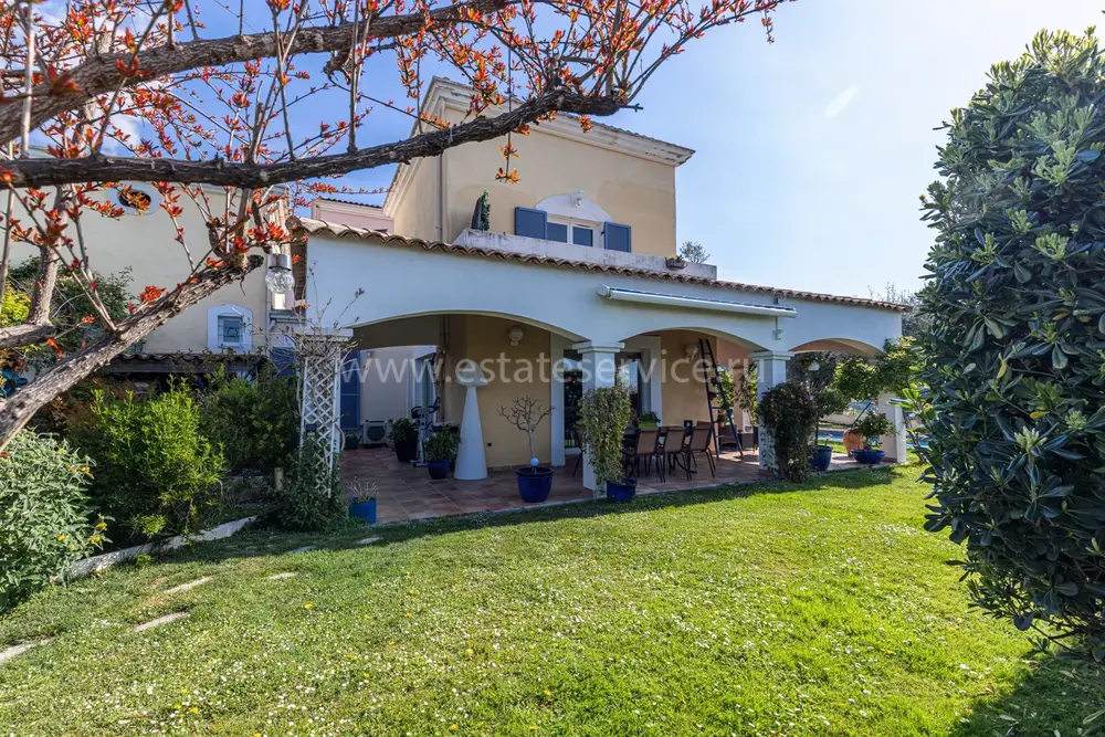 Современная вилла (2002 года постройки) в нео-провансальском стиле в районе Saint Pancrace. Площадь дома 165 m², участок 700 m² с красивым ухоженным садом и бассейном с морской водой и подогревом. На первом уровне - гостиная 30.5 m², отдельная кухня 12 m² с большой кладовой 15.3 m², спальня 9.5 m², ванная комната и туалет. Наверху разместились ещё две спальни 16.7 и 4.2 m² с балконом и душевая комната с туалетом. Отличное состояние, доминирующее расположение, тройная экспозиция. Коммунальные платежи 155 €, годовой налог на имущество 2.400 €.
