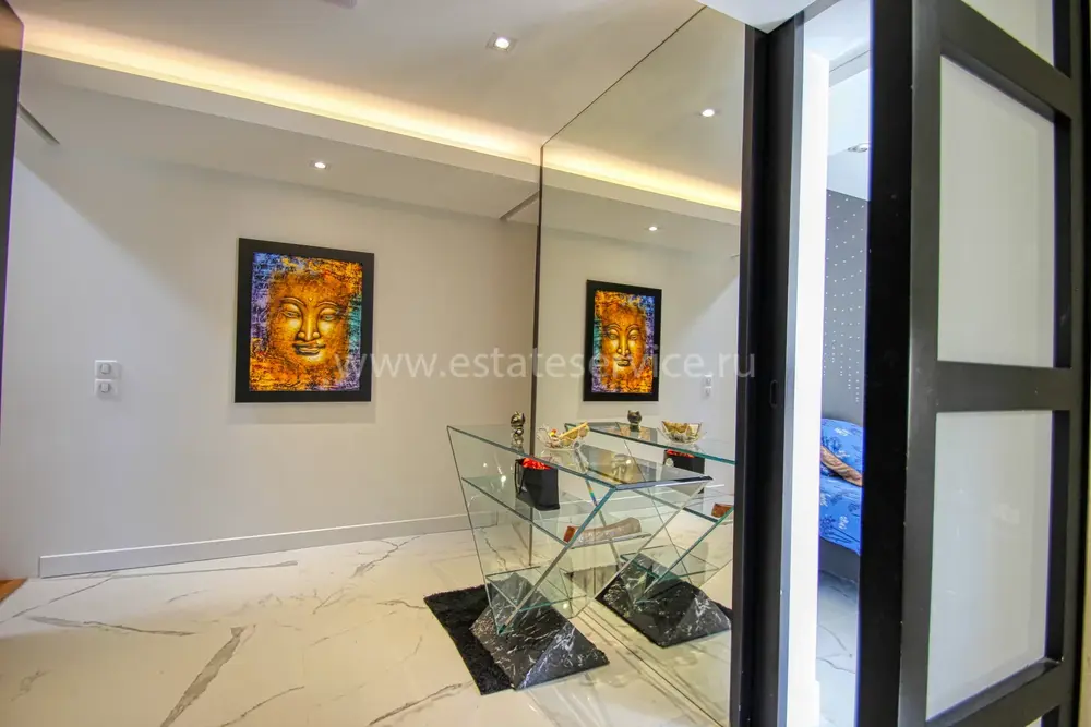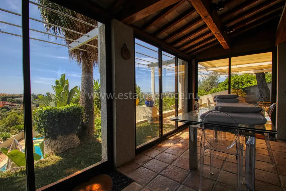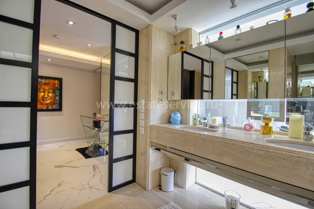 Современная вилла с морской панорамой и тихим расположением в квартале Гэро. Общая площадь 350 m² (жилая 274 m²), участок 7.000 m² с ландшафтным садом, дизайнерским бассейном, несколькими постройками и паркингом. На трёх уровнях (ко всем есть доступ на лифте) разместились просторная гостиная 50 m² с камином и выходом на южную террасу, большая кухня 17 m² с обеденной зоной, выходящая на террасу и веранду 12 m², главная спальня 13 m² с большой гардеробной и просторной ванной комнатой (ванна и душ), ещё три спальни 11, 12 и 13 m² с душевыми комнатами, две независимые студии 15 и 40 m², прачечная, подал и большой гараж. Годовой налог 4.000 €.