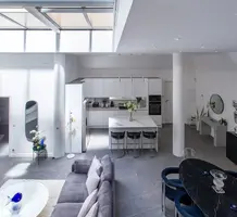 Нетипичные апартаменты-вилла (бывшая швейная мастерская) в тихом внутреннем дворе буржуазного здания в 200-х метрах от проспекта Жана Медсена и 350-ти метрах от Bd Victor Hugo. Общая площадь 122 m² (жилая 100 m²) - прихожая, большая гостиная 66.4 m² с высоким потолком и кухней островного типа, детская спальня 5.6 m² с с встроенной гардеробной, вторая спальня 22 m² в открытом мезонине (доступ по дизайнерской лестнице), отдельный туалет и ванная комната более 11 m² с ванной, душевой и прачечной. Коммунальные платежи 94 €, годовой налог 1.020 €.