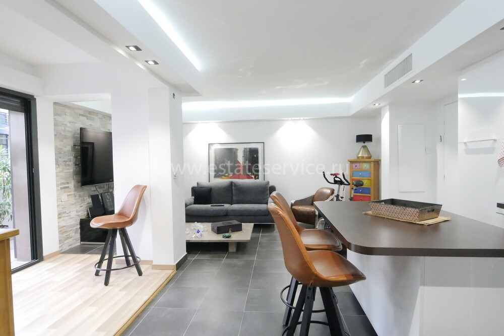 Со вкусом тремонтированная квартира на втором этаже современной резиденции (2010 года постройки) с очаровательным садиком по бульвару Виктора Гюго. Жилая площадь 52.6 m² - прихожая, двойная гостиная-столовая 26.8 m² с кухней островного типа, две уютные спальни 10.3 и 10.7 m², ванная комната с душевой, отдельный туалет и большая крытая терраса 26 m² на внутренний двор. Можно приобрести с закрытым гаражом 17 m² для крупногабаритного автомобиля - 50.000 €. Коммунальные платежи 150 €, годовой налог 2.100 €.