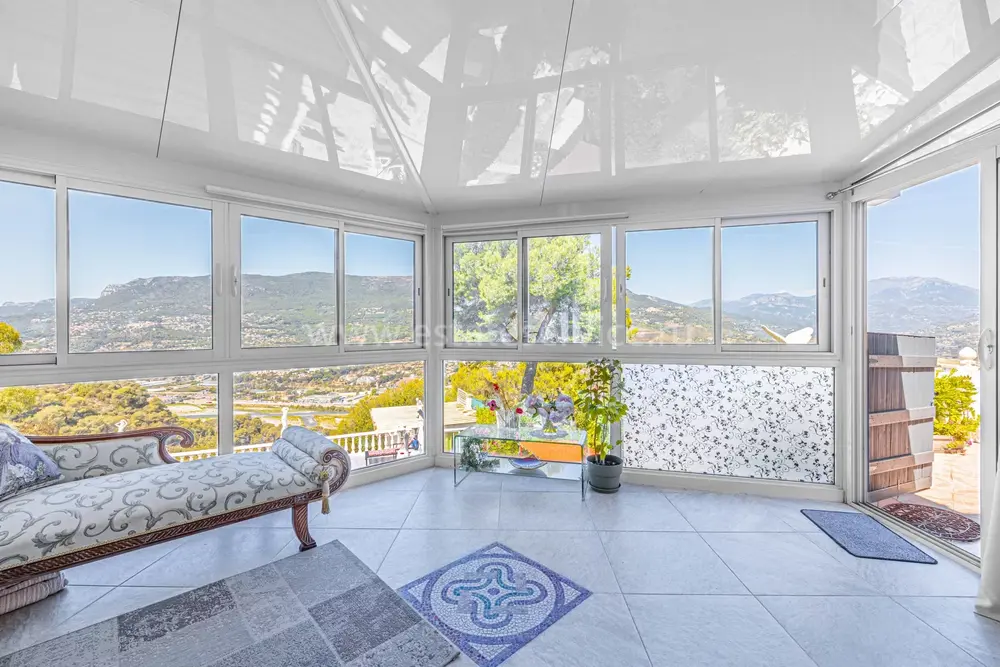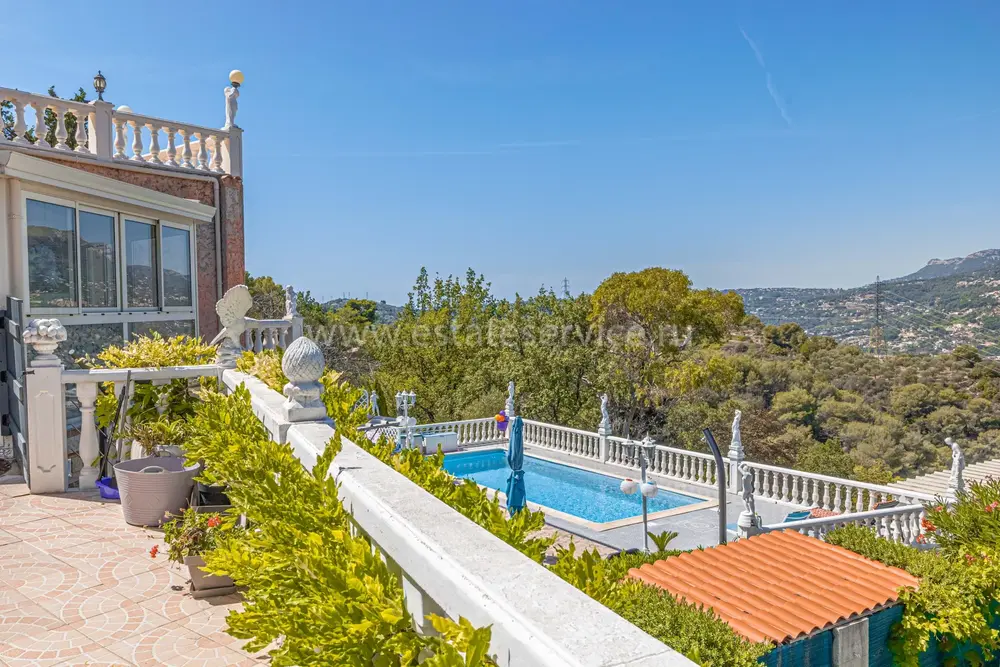 Просторная трёхуровневая вилла с доминирующим расположением и красивой панорамой на горы, реку Le Var и окрестности в местечке Коломар, сектор La Manda. Жилая площадь 183 m², участок 3.400 m² с ландшафтным садом, собственной скважиной, фруктовыми деревьями, бассейном, летней кухней, беседкой и паркингом на 5-6 автомобилей. В доме - прихожая, двойная гостиная более 50 m² с новым камином, просторная кухня, две спальни наверху с гардеробной, туалетом и ванной комнатой. Гостевые двухкомнатные апартаменты 55 m² с отдельным входом, несколько подсобных помещений 50 m², еще одна квартира 45 m² с отдельным входом на втором уровне, зона спа с инфракрасной сауной, фитнес-зал, зона барбекю. Годовой налог 2.200 €.