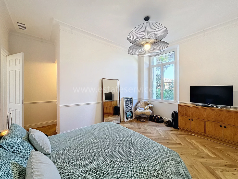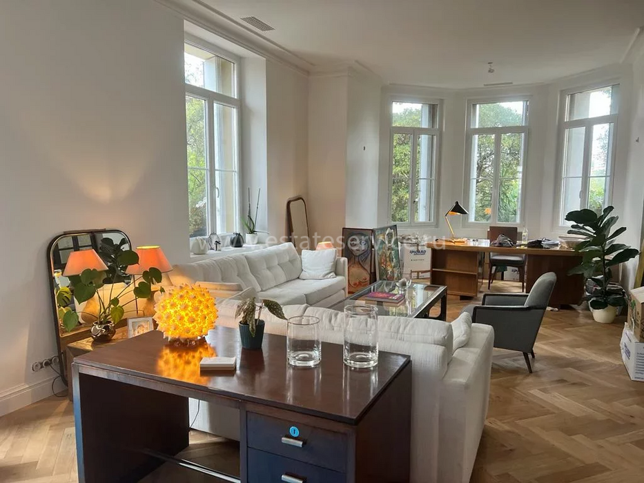 Солидные апартаменты на первом этаже красивого особняка в пешей доступности от Дворца фестивалей, набережной Круазетт и пляжа. Жилая площадь 140 m² - прихожая, просторная гостиная 72 m² с кухней, столовой зоной, открытым кабинетом и прямым выходом в частный сад 700 m², главная спальня 23 m² с гардеробной и душевой, вторая спальня 18 m² с прилегающей душевой и отдельный туалет. Высокие потолки, включены большая кладовая и два парковочных места. В настоящее время завершаются ремонтные работы - сдаётся с отделкой. Коммунальные платежи 310 €, годовой налог 1.600 €.