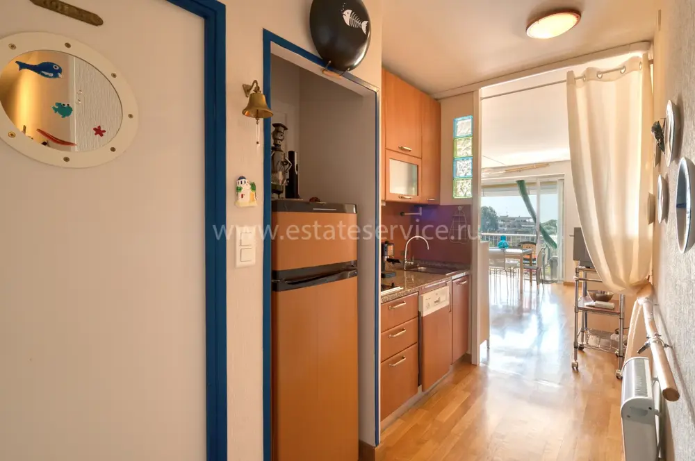 Квартира в элитной резиденции с шикарным садом, бассейном, теннисным кортом, тренажерным залом и паркингом в 3.5 км от Монако. Общая площадь 51.4 m² (жилая 44.5 m²) - прихожая 6 m² с встроенным шкафом и кухонным уголком 4 m², ванная комната 4 m² с душевой и туалетом, гостиная 23.4 m² с встроенной спальной зоной 6.25 m² и выходом на террасу 6.9 m² - открытый вид на море и парк. Коммунальные платежи 203 € (вода, консьерж, бассейн, тренажерный зал, теннис, лифт и общие расходы), годовой налог на имущество 1.473 €.