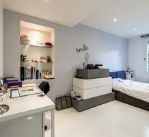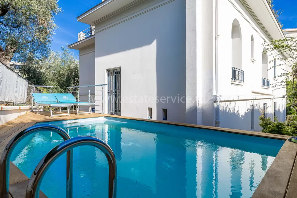 Солидные апартаменты занимающие первый этаж элегатной виллы с наземным бассейном и удобным расположением - Нижний Фаброн. Жилая площадь квартиры 129 m² - большая гостиная 45 m² с полуоткрытой кухней, выходом на террасу и частный сад 100 m², главная спальня 20 m² с ванной комнатой и кабинетом, ещё две спальни 12 и 13 m², душевая комната, гардеробная и прачечная. Годовой налог 1.800 €.