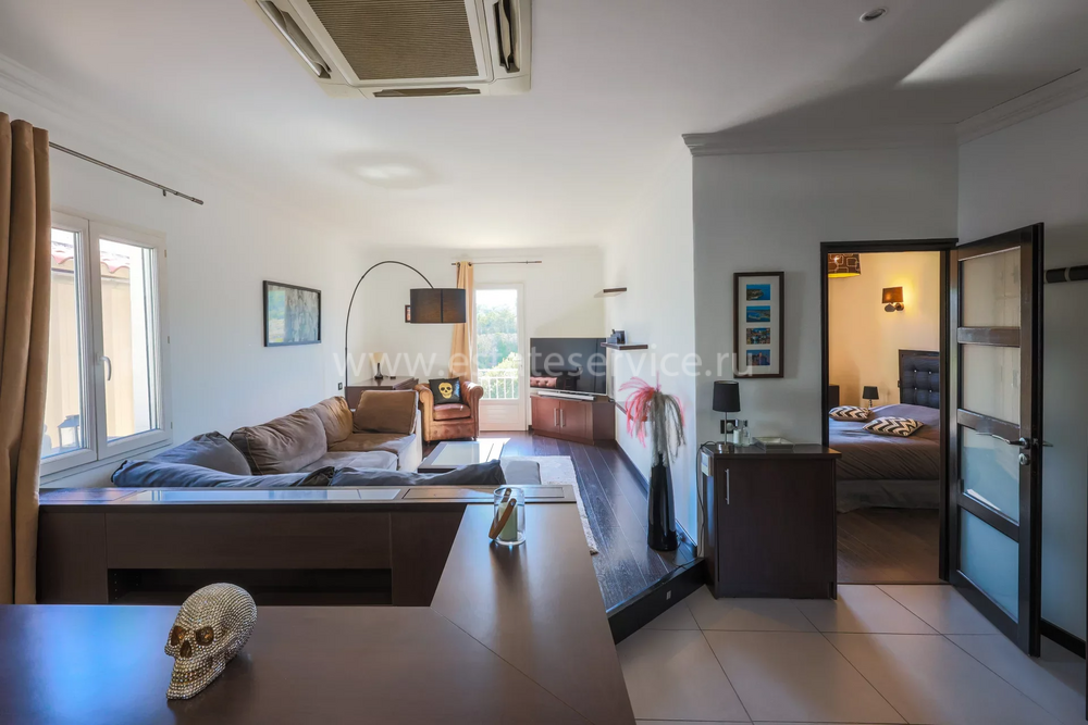 Вилла с тихим и удобным расположением в районе Av. des Broussailles - бульвар du Riou. Общая площадь 250 m² (жилая 180 m²) включает дом 120 m², отдельные апартаменты 60 m² с открытой кухней, спальней и ванной комнатой, а также помещение 70 m² под гараж или гостевую квартиру. На участке 400 m² новый бассейн с подогревом, большая терраса с летней кухней, печью для пиццы и барбекю, зона отдыха, площадка для игры в петанк, паркинг на три машины и небольшой огородик.