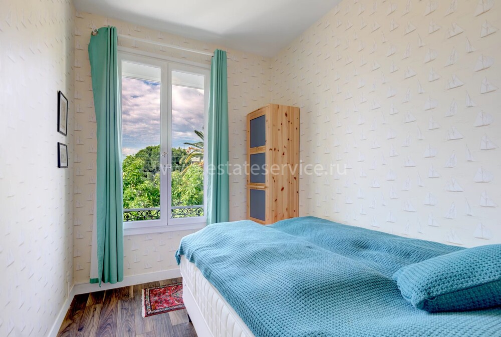 Красивая вилла Belle Epoque с тихим расположением в престижном резидентном секторе, проспект Рене Морис. Жилая площадь 168 m², на первом уровне отдельная спальня с ванной и туалетом. Далее разместились светлая и просторная гостиная с зоной столовой и открытой кухней, спальня-люкс со своей душевой комнатой, туалетом и террасой. Наверху (доступ по лестнице) ещё три спальни с душевыми/туалетами и балкон на южной стороне - вид на крыши домов, Ниццу, Собор Николая Чудотворца и море. В доме два входа, есть прачечная, закрытый гараж, небольшой сад 250 m² с фруктовыми и лимонными деревьями. Отличное состояние, близость основных удобств, рядом теннисные корты, магазины, трамвайная остановка, до английской набережной и моря примерно 1.5 километра.
