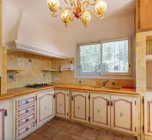 Просторный дом в провансальской стилистике с тихим расположением поблизости от центра деревни Сен-Поль-де-Ванс. Общая площадь 350 m² (жилая 181 m²), земельный участок 1.311 m². На двух уровнях разместились прихожая со шкафом, большая гостиная-столовая с камином и выходом на крытую террасу и балкон, отдельная кухня, главная спальня с ванной комнатой, душевой, туалетом и гардеробной, ещё две спальни - одна с душевой, другая с гардеробной, большая ванная комната со шкафом, большой кабинет, который легко переоборудовать в спальню, общая душевая, два отдельных санузла, несколько террас, а также закрытая летняя кухняп, прачечная, винный погреб, мастерская и два больших гаража. Красивый сад, большой бассейн, захватывающие панорамные виды.