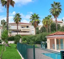 Квартира на первом этаже резиденции с ухоженным садом и бассейном в шести минутах от моря - проспект Мандаренье. Жилая площадь 19.6 m² - прихожая 3.3 m², гостиная 13 m² с кухонным блоком и гардеробной, душевая с туалетом и терраса выходящая на сад. Требуется некоторое обновление, подходит для сдачи. Коммунальные платежи 93 €, годовой налог 820 €.