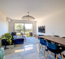 Апартаменты с ремонтом на втором этаже резиденции с ухоженной территорией, садом, бассейном и консьержем в пяти минутах езды (в 50-ти метрах автобусная остановка) от моря. Площадь квартиры 57 m² - гостиная 24 m² с выходом на тихую солнечную террасу 12 m², полуоткрытая кухня 9 m² с примыкающим балконом 4 m² - есть небольшой проблекс моря, спальня с гардеробной, душевая комната и отдельный туалет. Отличное состояние, включены кладовая и частная парковка, можно приобрести закрытый гараж. Коммунальные платежи 180 €, годовой налог 1.351 €.