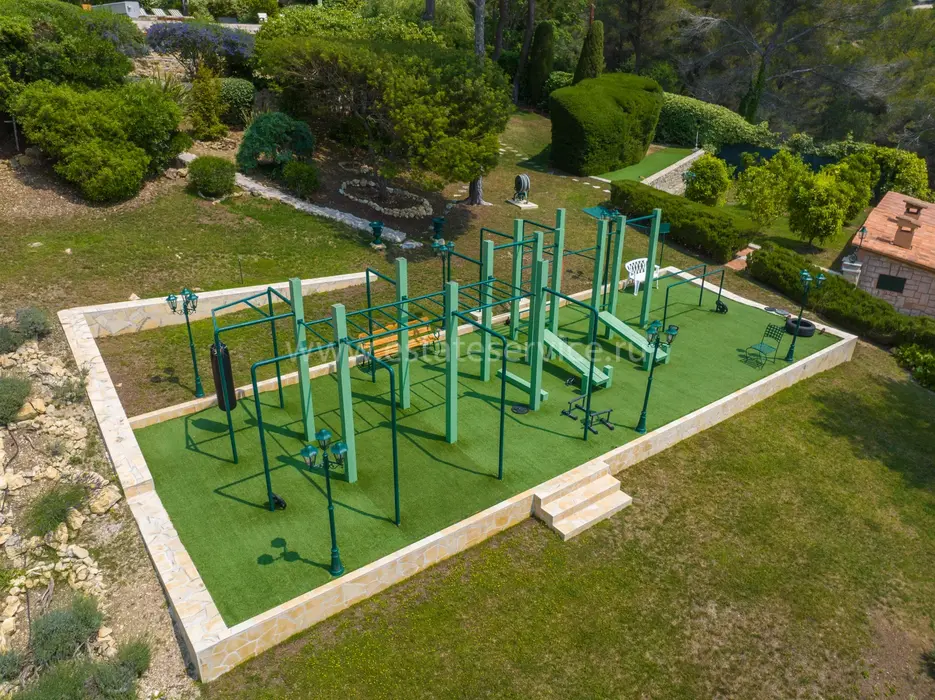 Семейное поместье с уединённым доминирующим расположением в десяти минутах от моря. Жилая площадь 450 m², в главной вилле - гостиная с камином, столовая с бильярдной, отдельная кухня, шесть спален, включая отдельную гостевую и пять ванных комнат. На пышном участке 9.000 m² спортивная и баскетбольная площадки, гостевой дом 100 m², зал для занятий йогой, летняя кухня с дровяной печью для пиццы, шикарный сад включающий более 15 различных видов растений, оливковых, мандариновых и лимонных деревьев, большой паркинг с удобным подъездом.