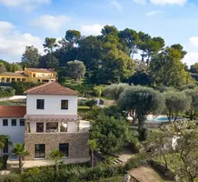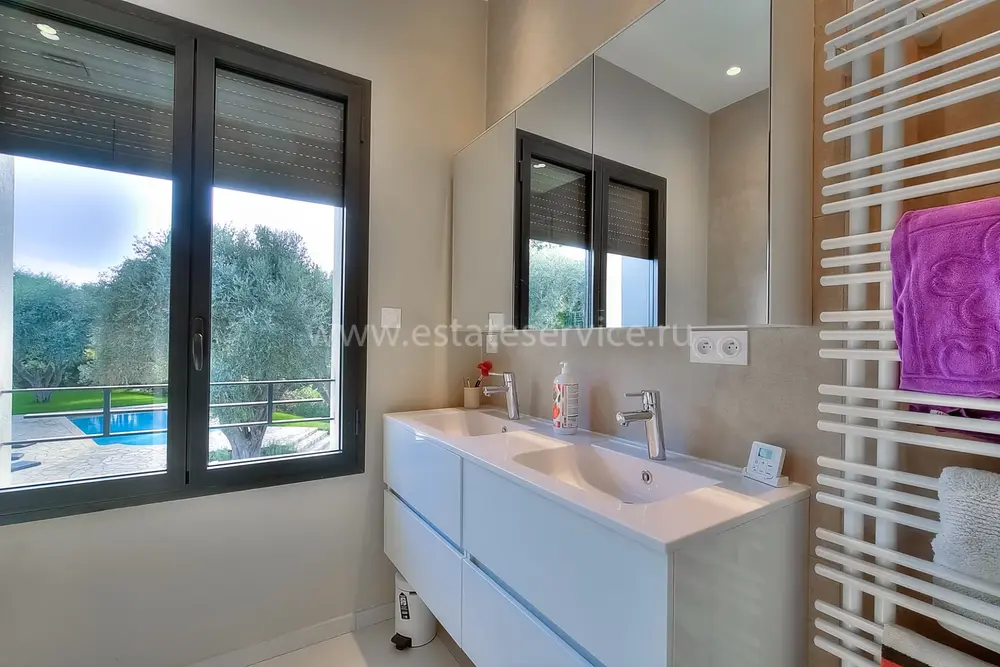 Просторная элегантная вилла стилистики Мoderne в престижном районе в пяти минутах от центра Мужан. Жилая площадь 230 m², на участке 3.400 m² шикарный сад с оливковыми и фруктовыми деревьями, большой бассейн, газон с автоматическим поливом и площадкой для петанка. В доме - светлая и просторная гостиная-столовая, выходящая на красивую террасу, полу-открытая функциональная кухня, три спальни, две из которых с душевыми, гостевая студия с отдельным входом, ТВ-зал с камином и кабинетом в мезонине, гараж на две машины. Отличное состояние, теплые полы.