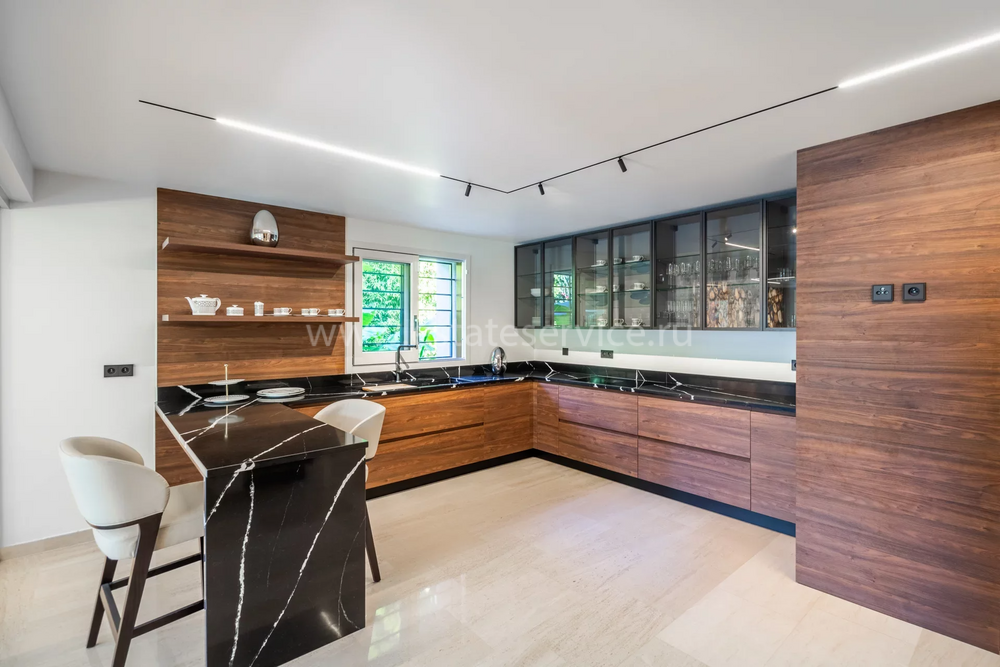 Полностью отремонтированная вилла с тихим и удобным расположением в одном из самых престижных секторов. Общая площадь 459 m² (жилая 412.7 m²) на первом уровне - двойная гостиная 90 m² с выходом в сад, отдельная кухня 25 m², главная спальня 24.7 m² с гардеробной и ванной комнатой. Наверху - три большие спальни 17, 23 и 47 m² с видом на море, одна со своей гардеробной и ванной комнатой, две другие - с душевыми, и большая терраса по периметру. На нижнем уровне тренажерный зал 43 m², сауна, отдельная студия 32 m², прачечная и винный погреб. Роскошная изысканная отделка, два больших гаража 47 m², шикарный сад и прочие удобства. Годовой налог 11.000 €.