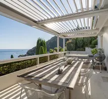 Полностью отремонтированный дом в престижном секторе в 500-х метрах от моря и в десяти минутах езды от Монако. Общая площадь 242.5 m² (жилая 137.9 m²), на трёх уровнях разместились прихожая 9.5 m² с подсобным помещением, гостиная-столовая 42.4 m² с открытой кухней, три спальни 12, 15.7 и 18.4 m² с видом на море, главная - с гардеробной, ванной комнатой и кабинетом, две душевые, терраса 56 m² с небольшим бассейном с подогревом и открытым душем, два балкона 17.9 и 18 m², гараж 12.4 m², прачечная и паркинг. Годовой налог 2670 €.