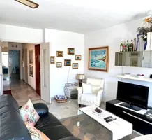 Просторные апартаменты на шестом этаже дома с лифтом в нескольких метрах от моря. Общая площадь квартиры 76.8 m² (жилая 66.4 m²) - большая прихожая 8.9 m², двойная гостиная 29.2 с видовой террасой 7.5 m², отдельная кухня 9.3 m², спальня 12.6 m² с лоджией 2.9 m², ванная комната и отдельный туалет. Требует некоторого обновления, легко оборудовать дополнительную спальню, включён гараж 15.6 m². Коммунальные платежи 190 €, годовой налог 1.274 €. Сделано предложение!