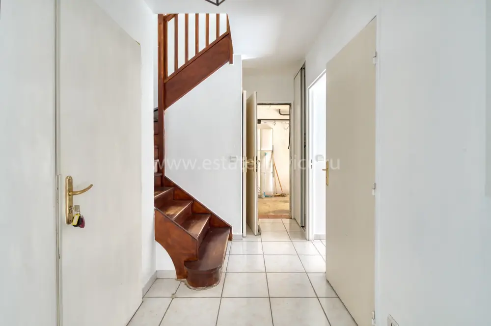 Уютная вилла в тихом зелёном районе поблизости от начальной школы, теннисных кортов, в километре от деревни Эз и 3-х км от моря - бульвар Maréchal Leclerc. Жилая площадь 101 m², на двух уровнях разместились прихожая, двойная гостиная с камином, высоким потолком и мезонином - используется как открытый кабинет, отдельная кухня, три спальни, одна из которых с балконом, ванная комната с ванной, душевая, два отдельных туалета и гараж с автоматическими воротами. Состояние среднее, огороженный частный садик 250 m² укрытый кустарником, три открытых парковочных места. Престижный кондоминиум с ухоженной территорией и общим бассейном, комплекс 1999 года постройки. Ежемесячные платежи 65 €, годовой налог 1.650 €.
