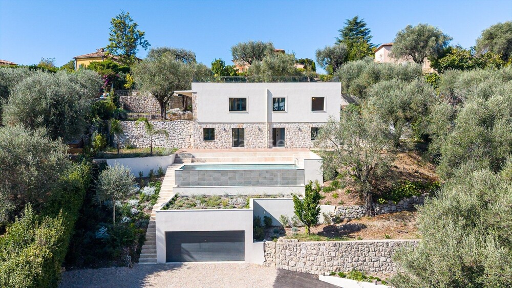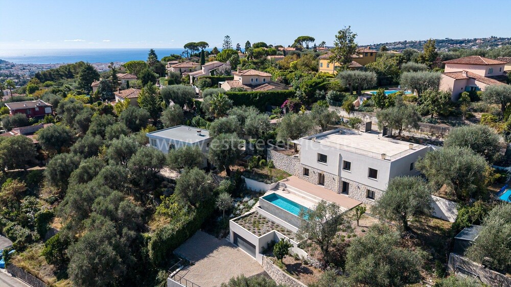 Полностью отремонтированная вилла в престижной безопасной резиденции в 300-х метрах от школы и всего 20-ти минутах от международного аэропорта Ниццы. Жилая площадь 190 m² + два гаража и террасы, прилегающий участок 1.600 m². В доме - просторная гостиная 70 m² с полу-открытой кухней, пять спален, одна гостевая со своей кухней, ванная комната, три душевые, прачечная, винный погреб, подсобное помещение и большая терраса на крыше 100 m² с проблеском моря. Коммунальные платежи 25 €, годовой налог 2.000 €.