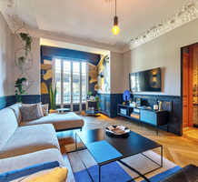 Стильные апартаменты на 4-м этаже дома с лифтом в нескольких минутах ходьбы от трамвайной линии и пляжа. Жилая площадь 105 m² - прихожая 9.7 m², большая гостиная 19.6 m², столовая 17.4 m² (можно использовать как дополнительную спальню), отдельная кухня 7.35 m², две большие спальни 14.7 и 15.3 m² с балконами, главная из которых со своей ванной комнатой и гардеробной. Высокие потолки, оригинальная лепнина, паркетные деревянные полы, можно приобрести с мебелью, докупить большую кладовую 15 m² и парковочное место. Удачный вариант как для проживания, так и/или сдачи в аренду. Коммунальные платежи 599 € за квартал, годовой налог 1.701 €.