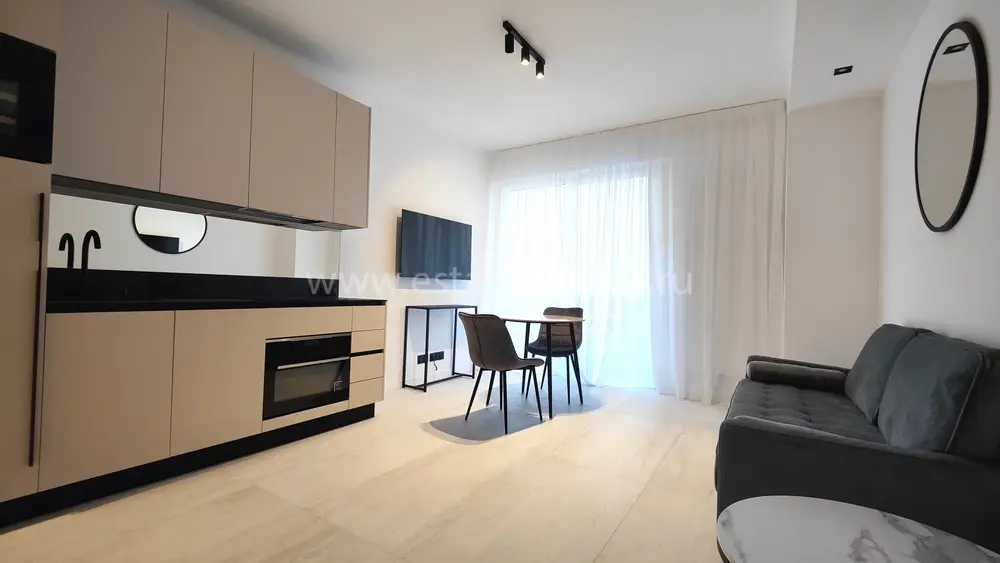 Апартаменты на третьем этаже престижного здания с лифтом в 150-ти метрах Английской Набережной. Общая площадь 57 m² (жилая 50.2 m²) - прихожая со шкафом, гостиная 23.5 m² с кухней и выходом на балкон 7 m² - боковой вид на знаменитый Негреско, две спальни 9 и 12.5 m² (также выходят на балкон) и душевая 5 m² с туалетом. Свежий качественный ремонт, кондиционеры в каждой комнате, электрические жалюзи, есть кладовая. Коммунальные платежи 151 €, годовой налог 1.031 €.