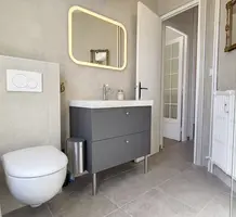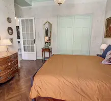 Светлые апартаменты на пятом (предпоследнем) этаже здания Art Déco с лифтом и помещением для хранения велосипедов/колясок поблизости от Square Mozart. Общая площадь 74 m² (жилая 69.5 m²) - прихожая 3 m², гостиная-столовая 25 m², отдельная кухня 7 m², две большие спальни 13 и 15.5 m², каждая со своим балконом, изысканная душевая комната с окном и туалетом. Очень высокие потолки (3.10 м) с лепнингой, паркет ёлочкой, кладовая, возможна аренда паркинга. Коммунальные платежи 150 €, годовой налог 907 €.
