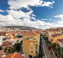 Квартира на верхнем этаже буржуазного здания без лифта в нескольких минутах от Place Garibaldi и Английской набережной. Общая площадь 83 m² (жилая 72 m²) - прихожая, двойная гостиная 25 m² с открытой островной кухней, первая спальня 16 m² с гардеробной и балконом, выходящим на восток, душевая комната (изготовлена под заказ) с умывальником примыкающие ко второй спальне 15 m² с кладовой. Стильный ремонт в сочетании с очарованием старины (высокие потолки с лепниной, большие окна, паркет ёлочкой) придают этой квартире очарование и элегантность. Квартира готова к заселению, прилагается подсобка 8.5 m² на чердаке. Коммунальные платежи 50 €, годовой налог 1.200 €.