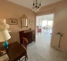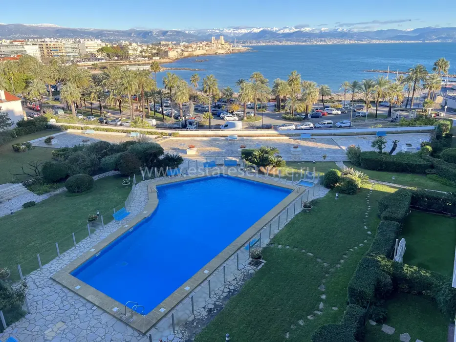 Апартаменты на пятом (предпоследнем) этаже элитной резиденции с бассейном в нескольких метрах от моря. Общая площадь 139.4 m² (жилая 108.5 m²) - прихожая с гардеробной, отдельная кухня (можно сделать открытой), гостиная 27 m² выходящая на террасу 14.5 m² с шикарным видом на море, три большие спальни 11.5, 14.5 и 15.3 m² со шкафами, ванная комната с туалетом, душевая с туалетом, отдельный санузел и вторая терраса 16.4 m² на юго-западную сторону - вид на Cap d'Antibes и маяк Phare de la Garoupe. Потребуется обновление, включена кладовая и большой двухместный гараж. Коммунальные платежи 509 €, годовой налог 2.117 €.